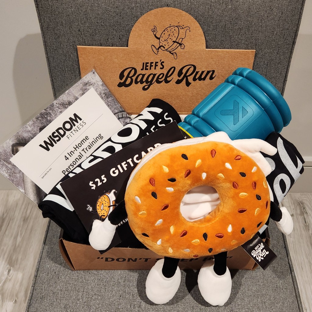 Get fit and treat yourself! This basket includes 4 in-home fitness sessions with a professional trainer, a selection of fitness gear to help you stay on track, and a gift card to Jeff’s Bagel Run for when it’s time to refuel. The perfect balance of sweat and savor — this basket makes wellness fun (and delicious)!